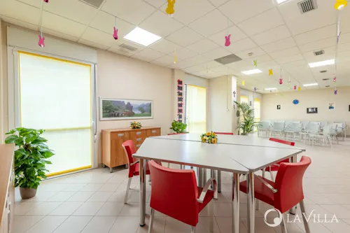 • Post pranzo/primo pomeriggio: successivamente si tiene il riposo pomeridiano nell'apposita sala dedicata, per ricaricare le energie in vista delle attività del pomeriggio con i laboratori creativi, fisioterapia, giardinaggio presso il Centro e uscite sul territorio.