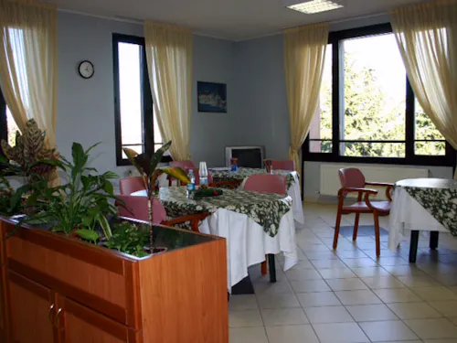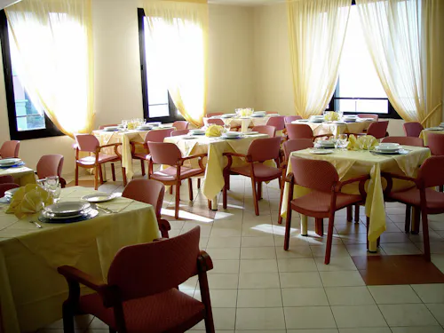Al Piano Terra sono collocati la sala ristorante, self-service ed un bar aperti al pubblico tutti i giorni (festivi inclusi). Il menu, differente a seconda delle esigenze sanitarie della singola persona e stabilito dalla Dietista, permette scelte quotidiane da parte dell’Ospite. I familiari possono usufruire del servizio ristorante e del servizio bar collocato al piano terra.