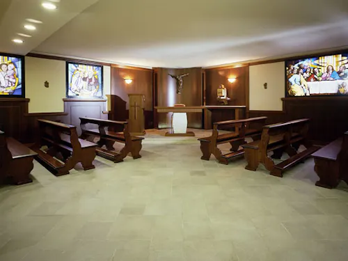 Adiacente al Bar si trova un giardino con una splendida fontana che valorizza la statua di San Pio da Pietrelcina.