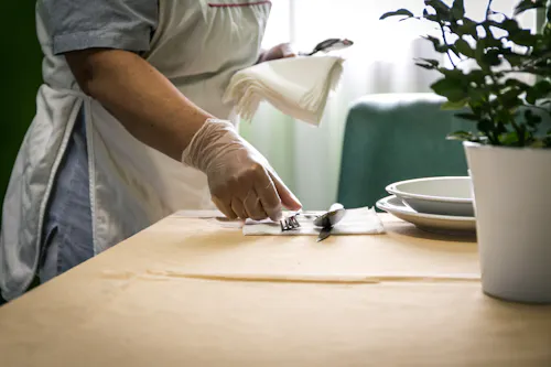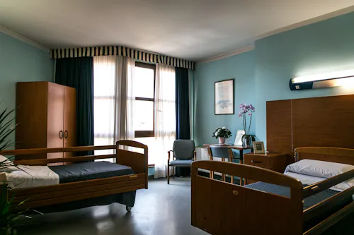 Le camere, singole e doppie, sono arredate in stile alberghiero, dotate di servizi dedicati e dispongono di impianto di chiamata assistenti, telefono e predisposizione per la presa tv. Sono inoltre personalizzabili dall’Ospite, che può arredarle con oggetti personali, per sentirsi ancora più a casa.