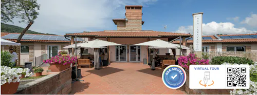 RSA Caravaggio è situata su una verdeggiante collina della Maremma toscana, a pochi passi da realtà storiche come Massa Marittima, Vetulonia, Populonia. Vicina al mare e il moderno Porto di Scarlino, la struttura si affaccia sullo splendido scenario del golfo di Follonica. La posizione suggestiva e strategica e il clima temperato, con estati miti e inverni non rigidi, la rendono un luogo di permanenza gradevole e sereno. Internamente la RSA è suddivisa su tre piani e dispone di camere doppie accoglienti e funzionali, con sistema di climatizzazione estate/inverno e balcone panoramico. Al piano seminterrato si trovano i magazzini, gli spogliatoi per il personale e i locali tecnici. Al piano terra si trovano la sala da pranzo, il soggiorno, aree destinate ai servizi generali e il bagno assistito. Al piano superiore ci sono Direzione e Reception, infermeria, palestra, bagno assistito e una grande sala polivalente dove vengono svolte attività ricreative e d’animazione. È inoltre presente in struttura un salone parrucchiera e una cappella per lo svolgimento delle funzioni religiose. Esternamente la struttura dispone di un bel giardino attrezzato con gazebo dove gli Ospiti possono godersi momenti di relax in un ambiente protetto.