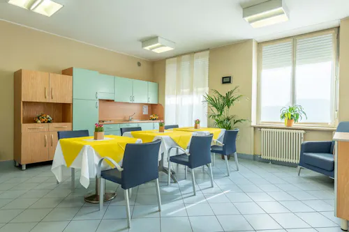 La nostra Struttura promuove il progetto Rsa Sicura e rispetta le norme per il contrasto del Covid-19, in ottemperanza alle disposizioni di legge. Offriamo una dimensione di vita in Rsa a misura d’ospite, nel rispetto delle regole di sicurezza, garantendo a tutti qualità di assistenza, benessere e protezione a 360°.RSA Mater Sapientiae è situata a Milano, a pochi passi da P.le Brescia, non distante dalla Fiera di Milano “City”. L’edificio, recentemente ristrutturato si sviluppa su 4 piani: il piano terra accoglie la reception ed un angolo ristoro con distributori di bevande e bibite, oltre la Direzione, l’ufficio Amministrativo, la palestra attrezzata per le attività riabilitative, l’ambulatorio medico, un salone per le attività di animazione, il servizio parrucchiere, una cappella per le funzioni religiose e una sala del commiato. Dispone di 7 camere singole e 46 camere doppie spaziose e luminose, tutte dotate di dispositivi elettronici di chiamata personale e bagno dedicato, nonché di aria condizionata, come tutti gli altri ambienti. Tutti i piani sono dotati di sale da pranzo, soggiorni comuni per le attività quotidiane e di animazione, salette private per ospiti e familiari, un ambulatorio infermieristico e locali attrezzati per il bagno assistito a persone non autonome; al terzo piano dispone anche di una biblioteca molto fornita. Esternamente la struttura è circondata da due spaziosi giardini uno dei quali situato davanti alla Reception e caratterizzato da una fontana e percorsi pedonali. Entrambi sono dotati di gazebo, panchine e di camminamenti. La Struttura è provvista di impianto di videosorveglianza e di sistemi di allarme antiintrusione.