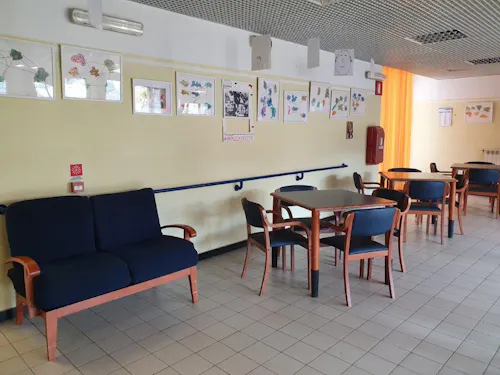 Oltre alle stanze, dotate di telefono ed impianto tv, sono presenti una sala polivalente, due sale da pranzo, una saletta lettura, una palestra, una infermeria, una cucina interna.