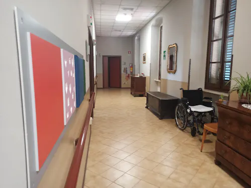 La R.S.A. è organizzata su tre piani per complessivi 61 posti letto, di cui 20 accreditati e 41 autorizzati (posti di sollievo).