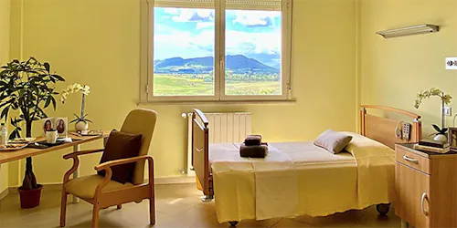 Le stanze – singole e doppie – sono ampie, dotate di bagno, antibagno, impianto di condizionamento autonomo, sistema di chiamata acustico e di tutto l’occorrente per l’utilizzo di un sistema di aspirazione e ossigeno terapia.
