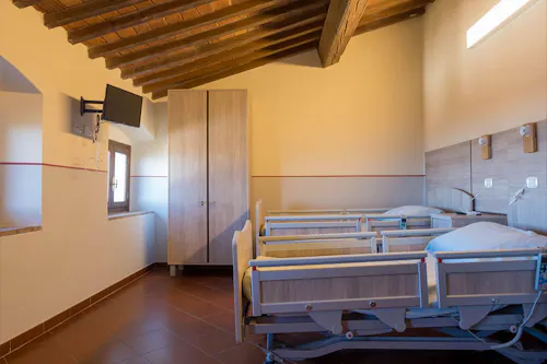 Gli ampi spazi, la palestra, il terrazzo offrono un piacevole soggiorno. L’ RSA è ubicata a poche decine di metri dal Santuario di Montenero e su una collina con un meraviglioso paesaggio.